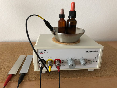 Ich arbeite mit den Therapiegeräten BIOSYN und POTENSYN und mit dem TENSOR. Diese werden von der Firma BIONIK AG sorgsam produziert und laufend weiterentwickelt. Mit dem Tensor überprüfe ich die Einstellungen der Geräte und die Dauer der Behandlung fortlaufend. Die grosse Resonanz unseres Körpers mit dem Wasser setze ich ein, um Informationen von Heilmitteln dem Körper einzuschwingen. Die Regulations- und Selbstheilungskräfte werden angeregt.